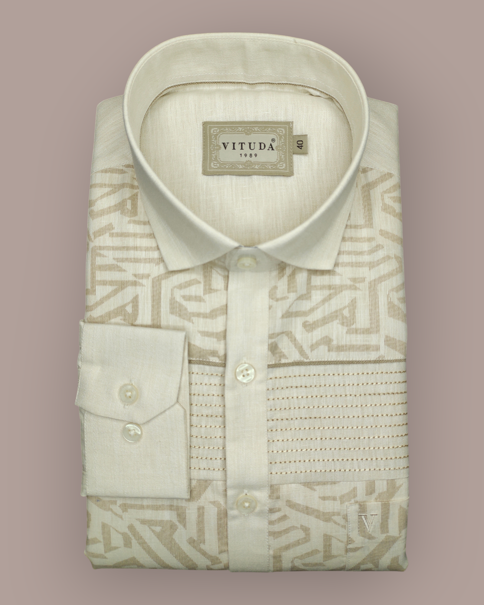 Elevate your wardrobe with timeless sophistication in the Vituda Men’s Ivory Designer Shirt, a refined piece crafted for modern elegance. Designed in a soft ivory tone, this shirt features an exquisite geometric woven panel across the chest that adds depth, texture, and a subtle statement without overpowering the look.
