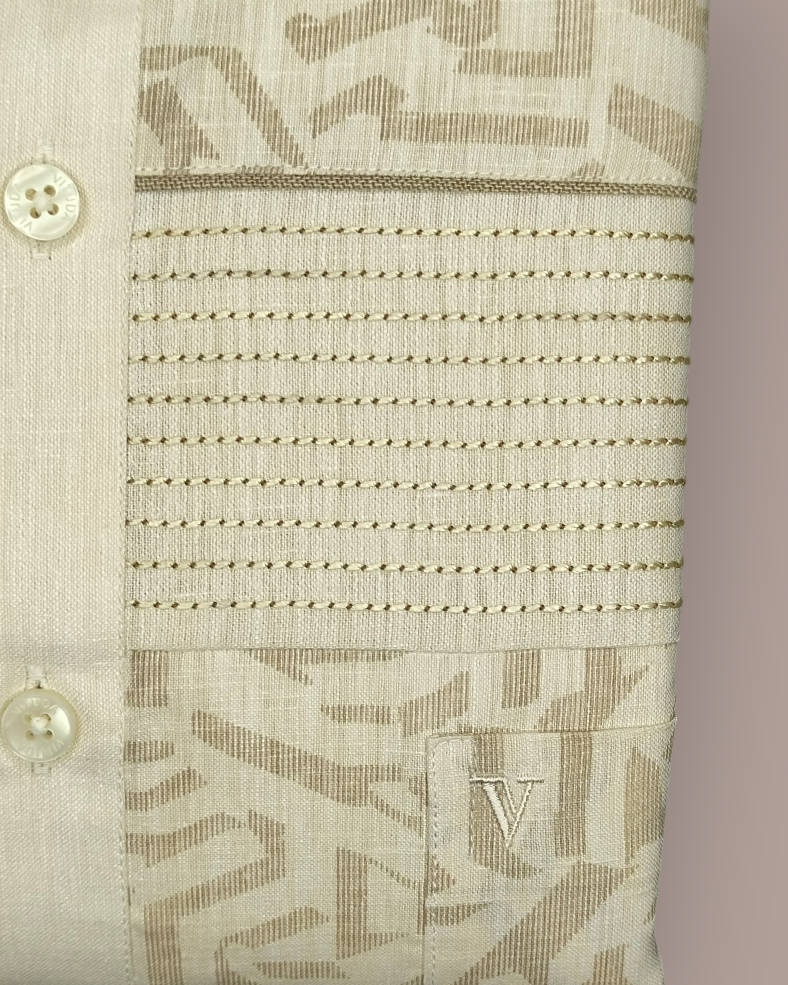 The premium textured fabric offers breathability and all-day comfort, while the structured collar and precision stitching reflect Vituda’s commitment to fine craftsmanship since 1989. Thoughtfully detailed with elegant buttons and a discreet Vituda “V” monogram, this designer shirt transitions seamlessly from formal occasions to elevated festive and smart-casual wear.