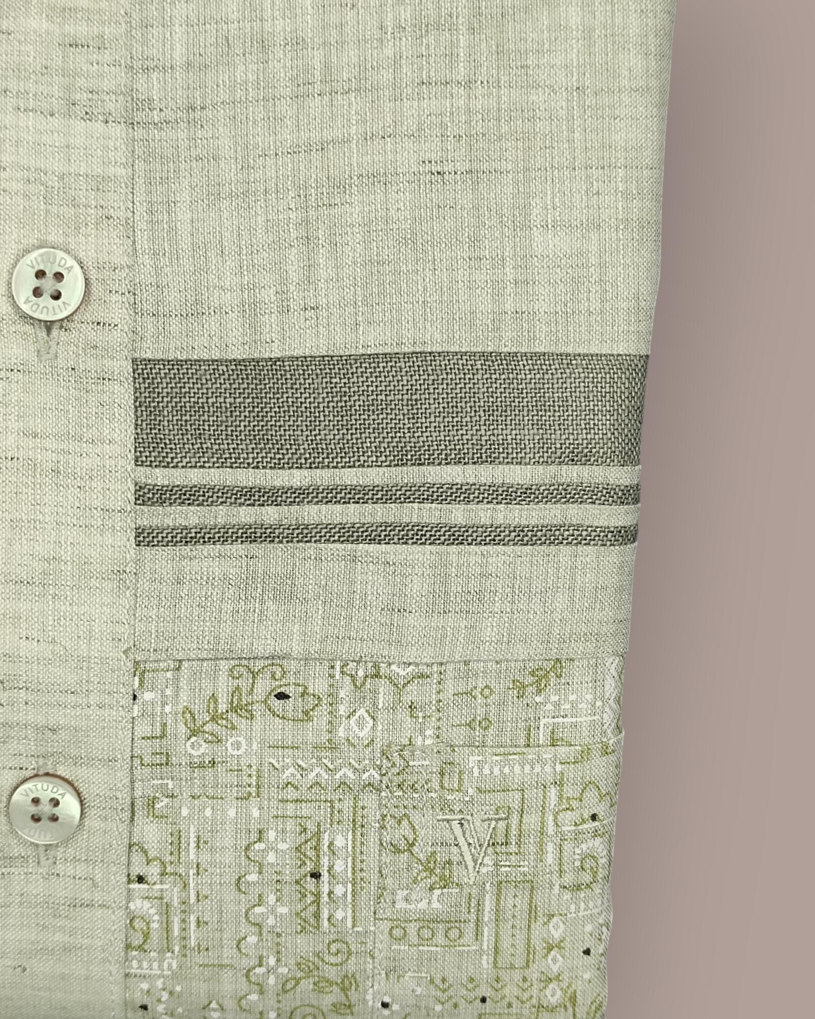 The standout design element is the intricately patterned lower panel, complemented by refined horizontal woven detailing across the chest. These thoughtful accents add character while maintaining a clean and sophisticated aesthetic. Finished with a structured collar, premium buttons, and Vituda’s signature craftsmanship, this shirt is ideal for festive occasions, office gatherings, and elevated everyday wear.