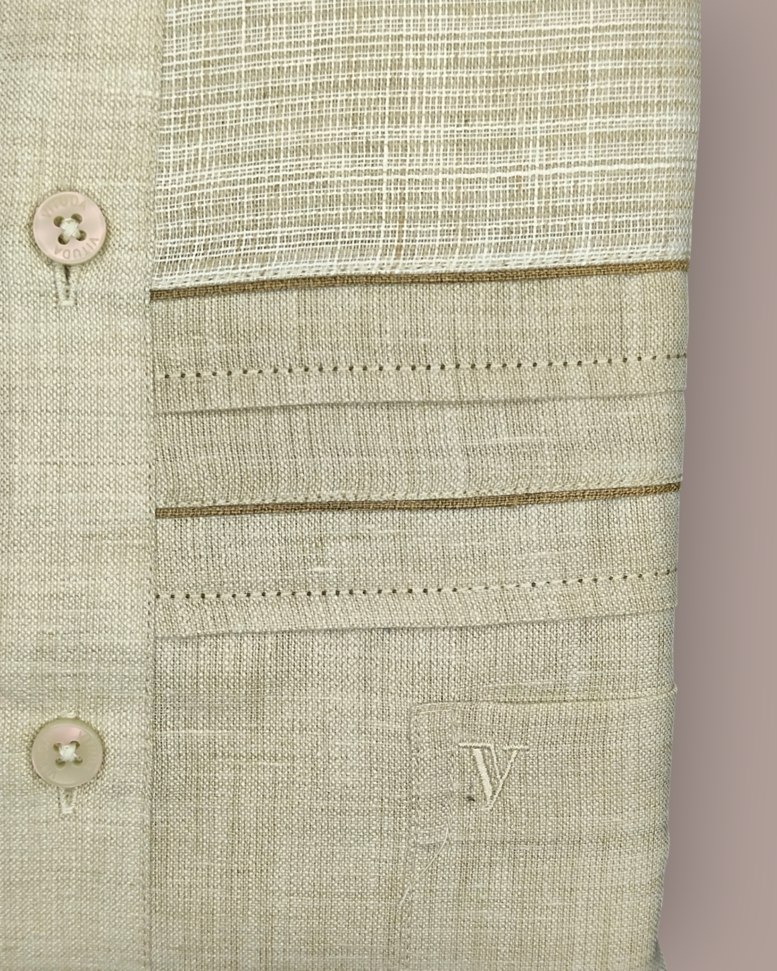 Men’s Half Sleeves Beige Textured Designer Shirt - Subtle Embroidery & Pintuck Detailing