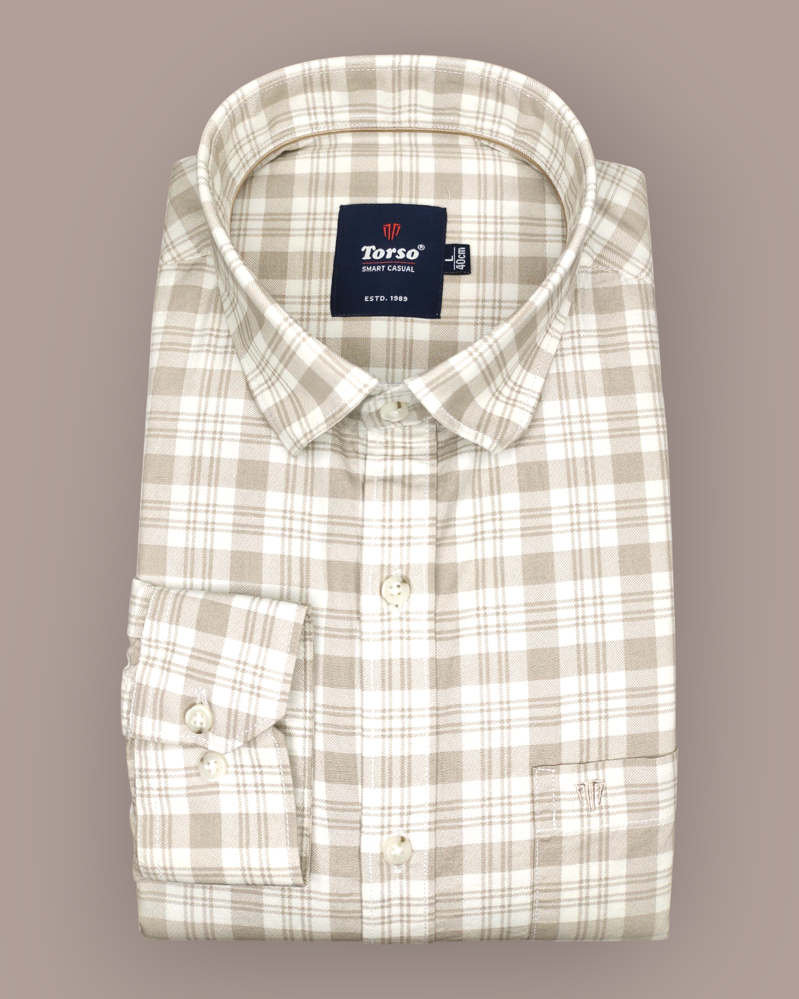 Men's Full Sleeves Beige & White Gingham Check Premium Shirt