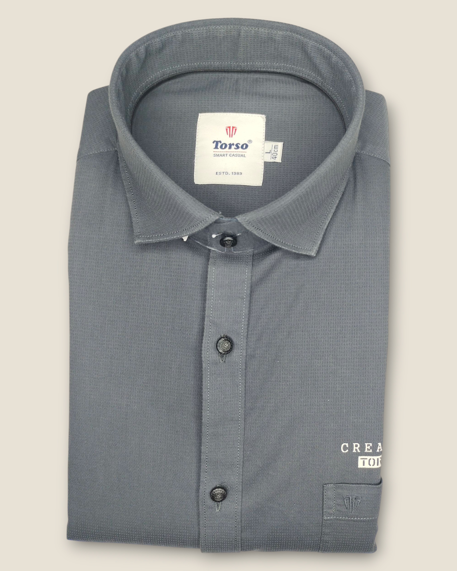 Upgrade your wardrobe with the Torso Smart Casual Shirt in a sophisticated grey shade – a perfect blend of modern style and timeless elegance. Crafted from premium 100% cotton with a subtle stripe texture, this shirt is designed for all-day comfort and smart versatility.