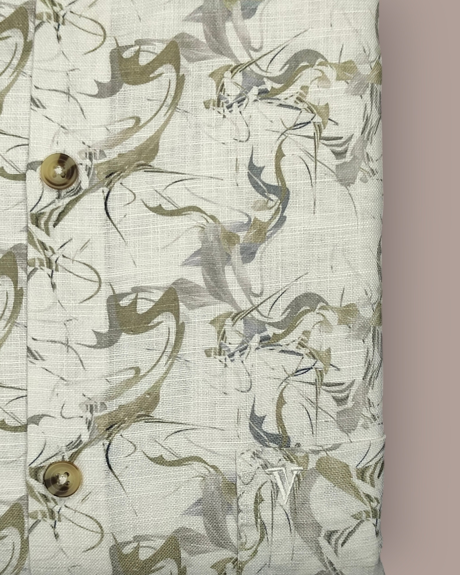 Refine your wardrobe with the striking elegance of the VITUDA Men’s White Marble Print Linen Look Shirt. This tailored-fit shirt features a bold yet sophisticated marble-inspired pattern in subtle smoky grey and sage green tones, delivering a modern twist on classic menswear.