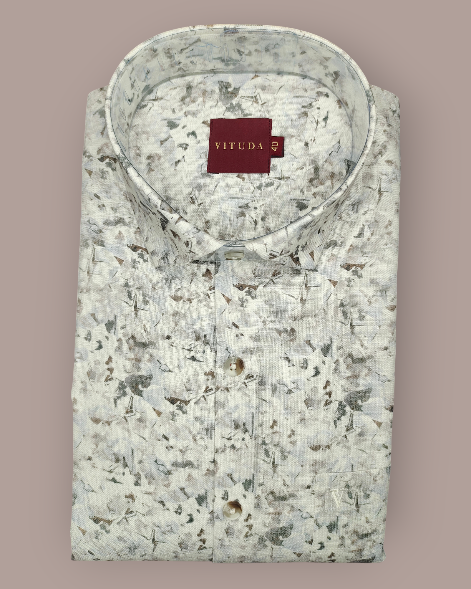 Elevate your casual and semi-formal wardrobe with the VITUDA Men’s Tailored Fit Abstract Printed Shirt. This piece features a captivating, all-over abstract design in a modern palette of light grey, white, and subtle earthy tones, offering an artistic and contemporary aesthetic.