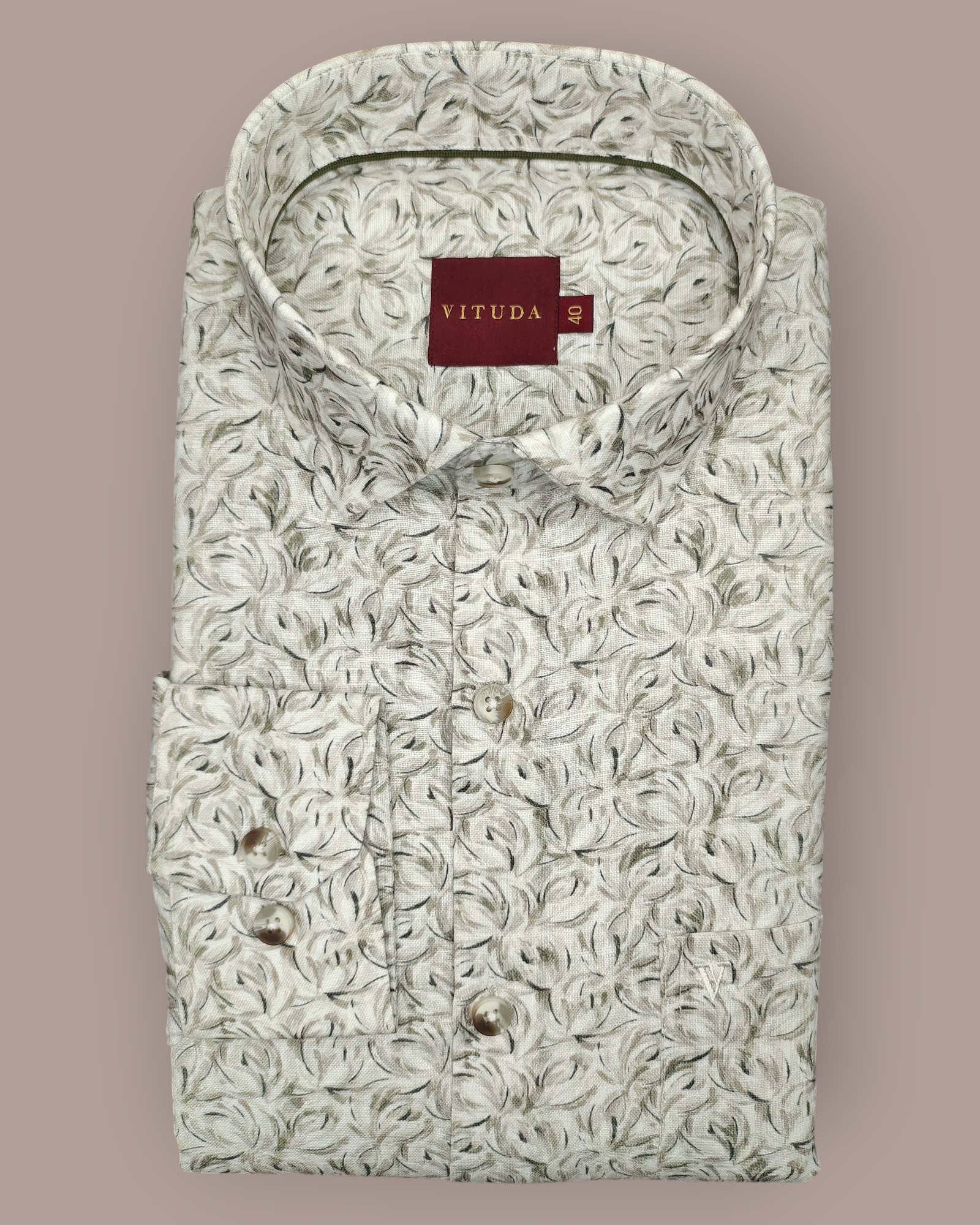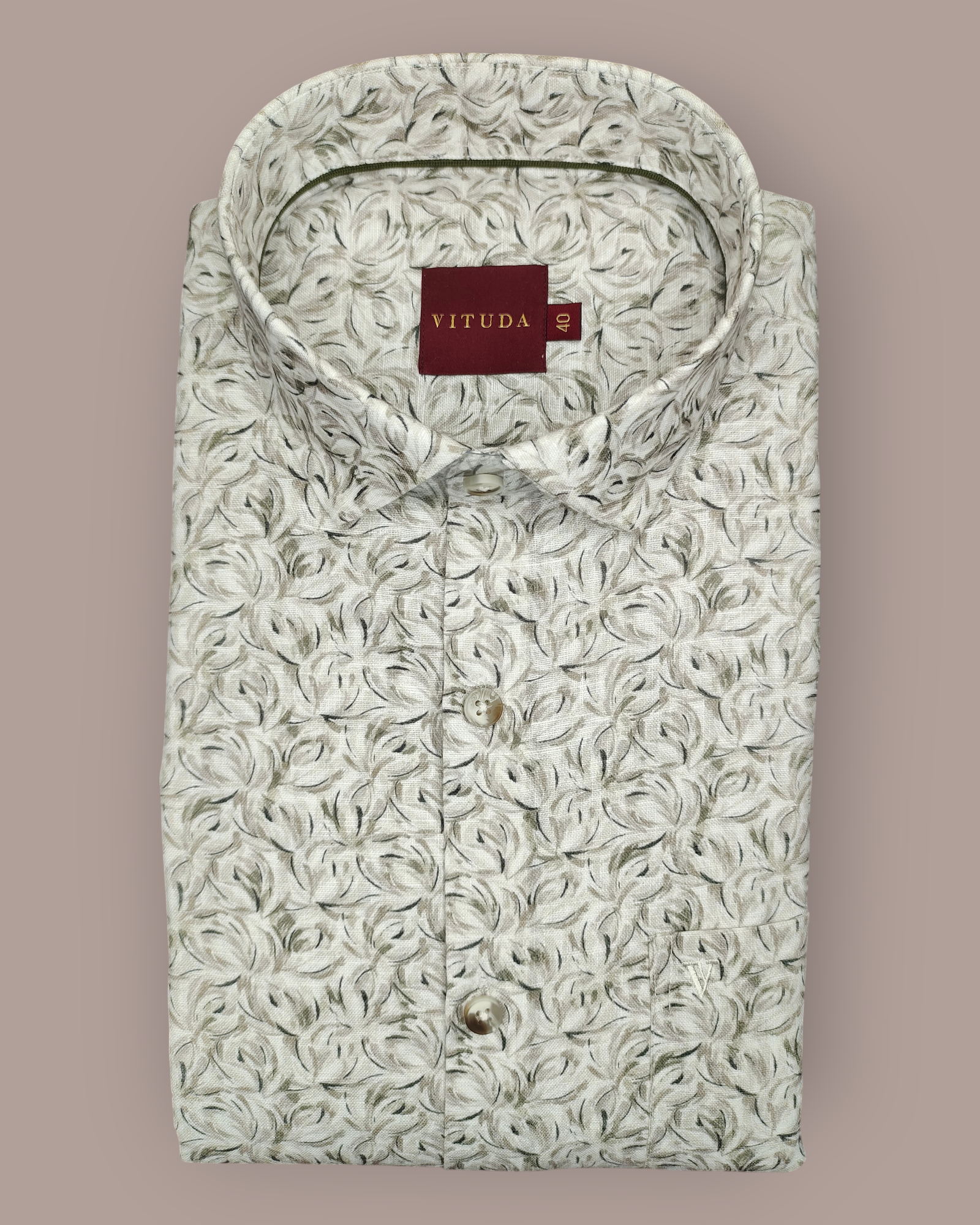 Elevate your everyday wardrobe with the Vituda Men’s Premium Textured Leaf-Swirl Printed Cotton Shirt, a perfect blend of sophistication and comfort. This shirt showcases an elegant beige base enhanced with an artistic swirl pattern in soft olive and grey tones, giving it a refined and modern look.