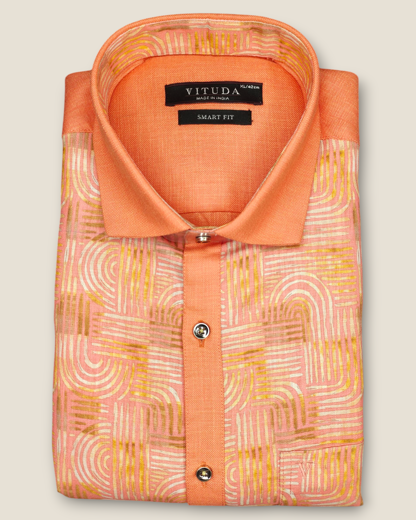 Make a statement with this orange printed shirt from Vituda, designed in a smart fit that blends comfort with modern style. The shirt features a unique artistic print with geometric patterns in subtle white and mustard accents, giving it a vibrant yet sophisticated edge. Crafted from a breathable cotton-linen blend, it’s perfect for festive occasions, parties, or casual outings where you want to stand out with confidence.