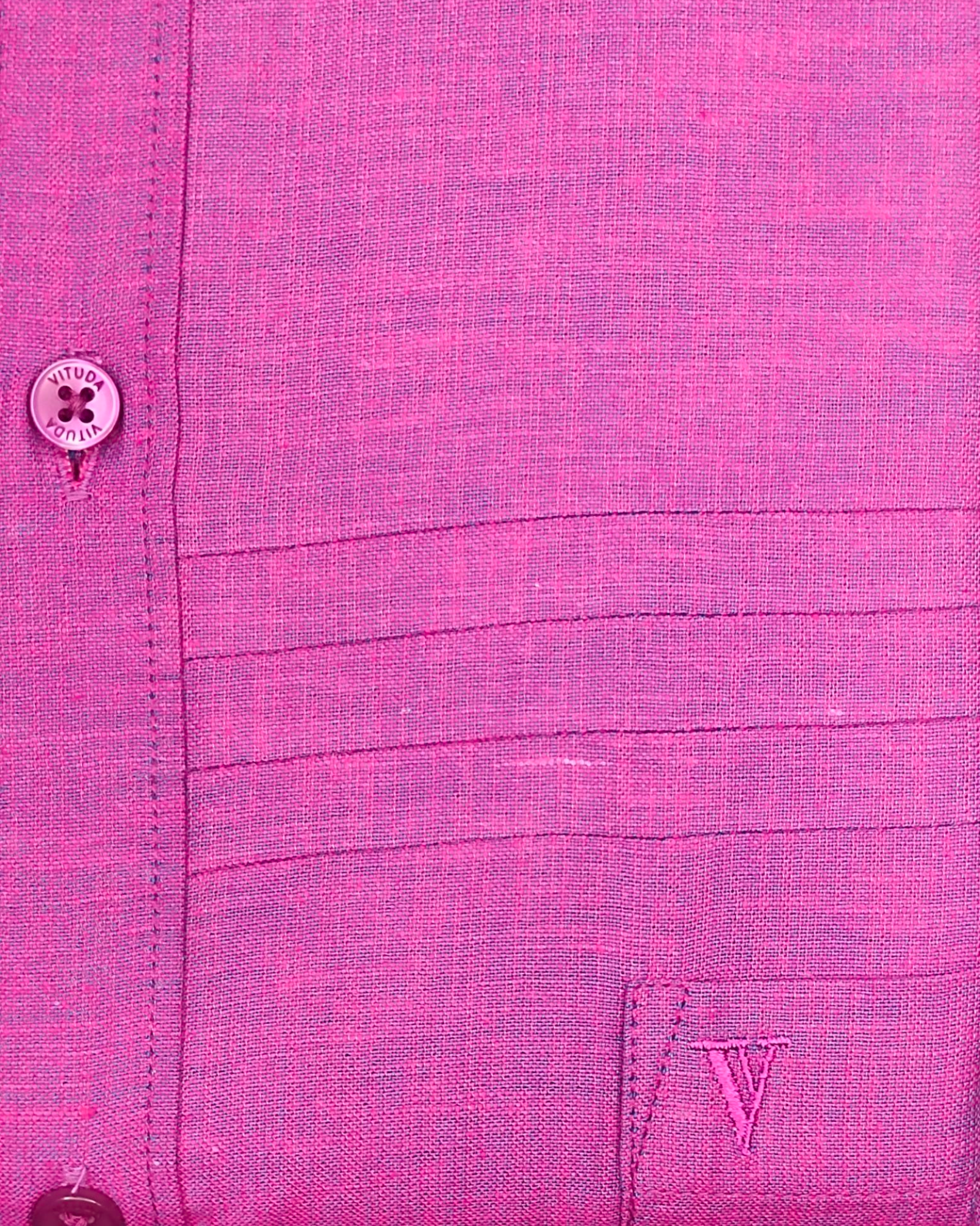 Make a statement with this striking magenta shirt from Vituda, designed in a smart fit for a sharp and modern look. Crafted from a premium cotton-linen blend, it offers breathability and comfort while keeping you effortlessly stylish. Featuring a sleek button-down front and the signature V embroidery on the hem, this shirt blends vibrant energy with classic tailoring.
